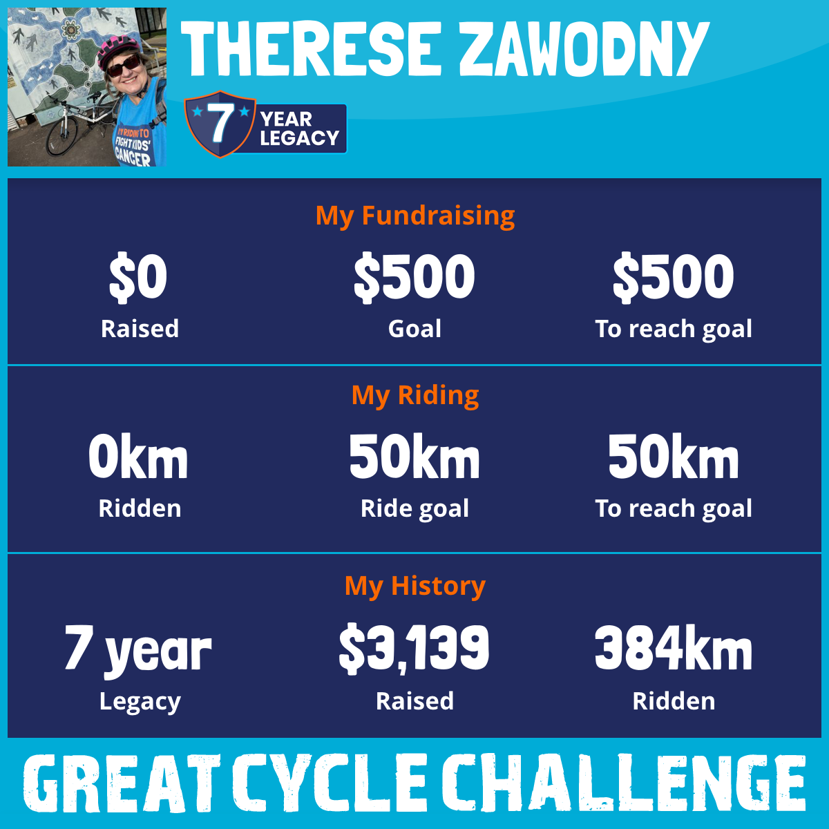 And so I am riding and raising funds to support the Children's Medical Research Institute to continue their work into the prevention, diagnosis, treatment and finding a cure for childhood cancer.