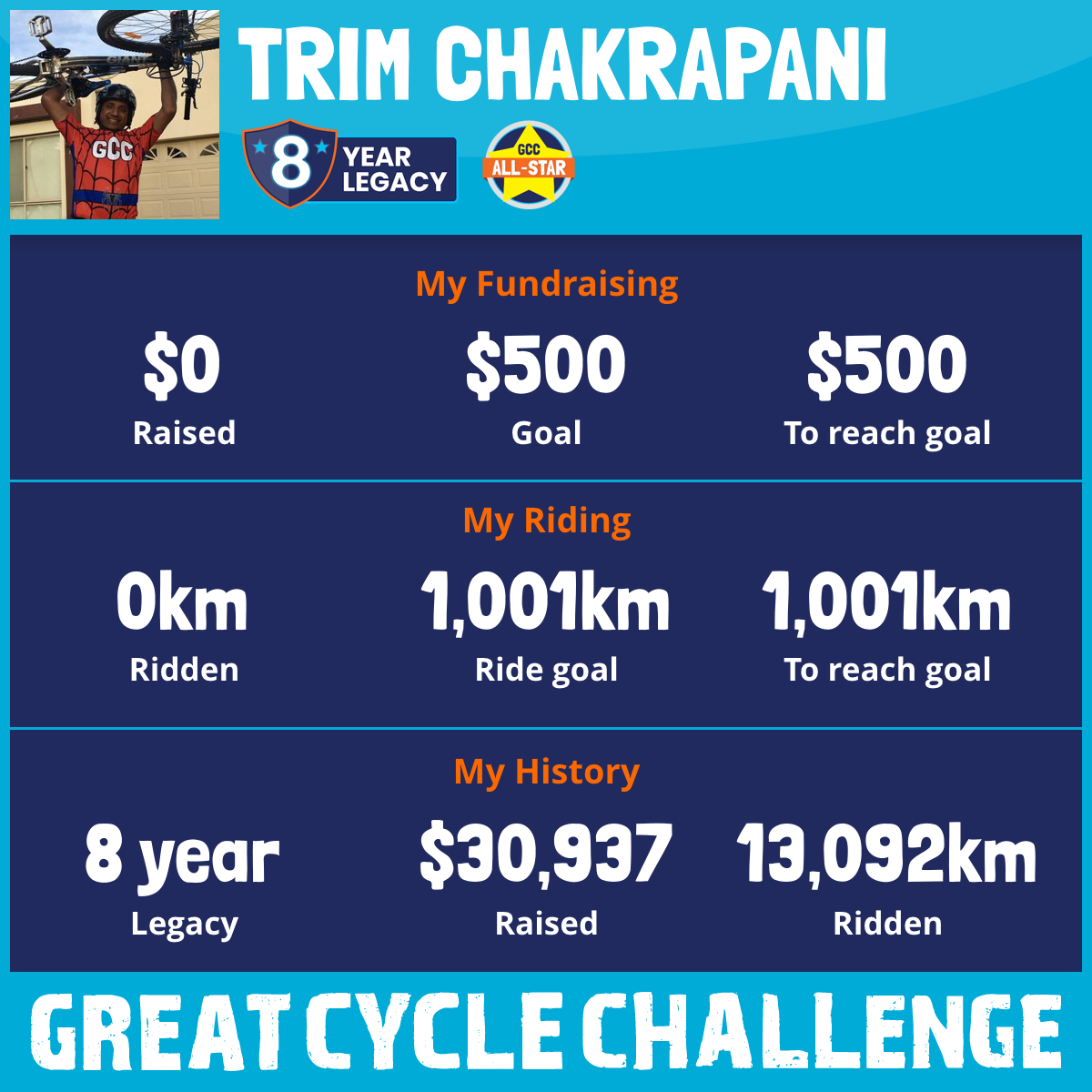 And so I am riding and raising funds to support the Children's Medical Research Institute to continue their work into the prevention, diagnosis, treatment and finding a cure for childhood cancer.