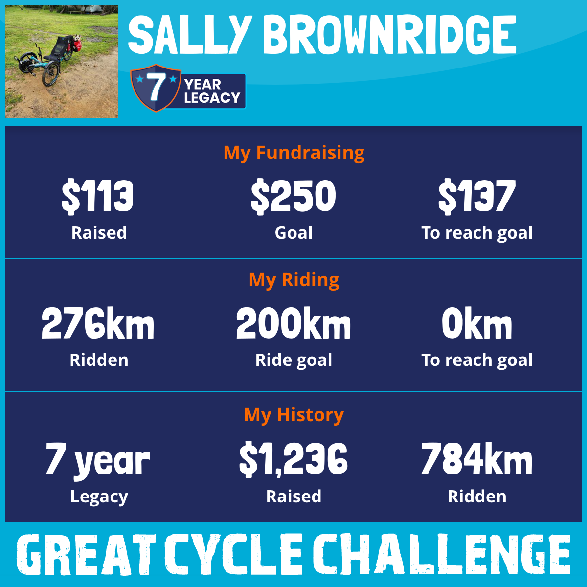 276 km Ridden$113 Raised2025