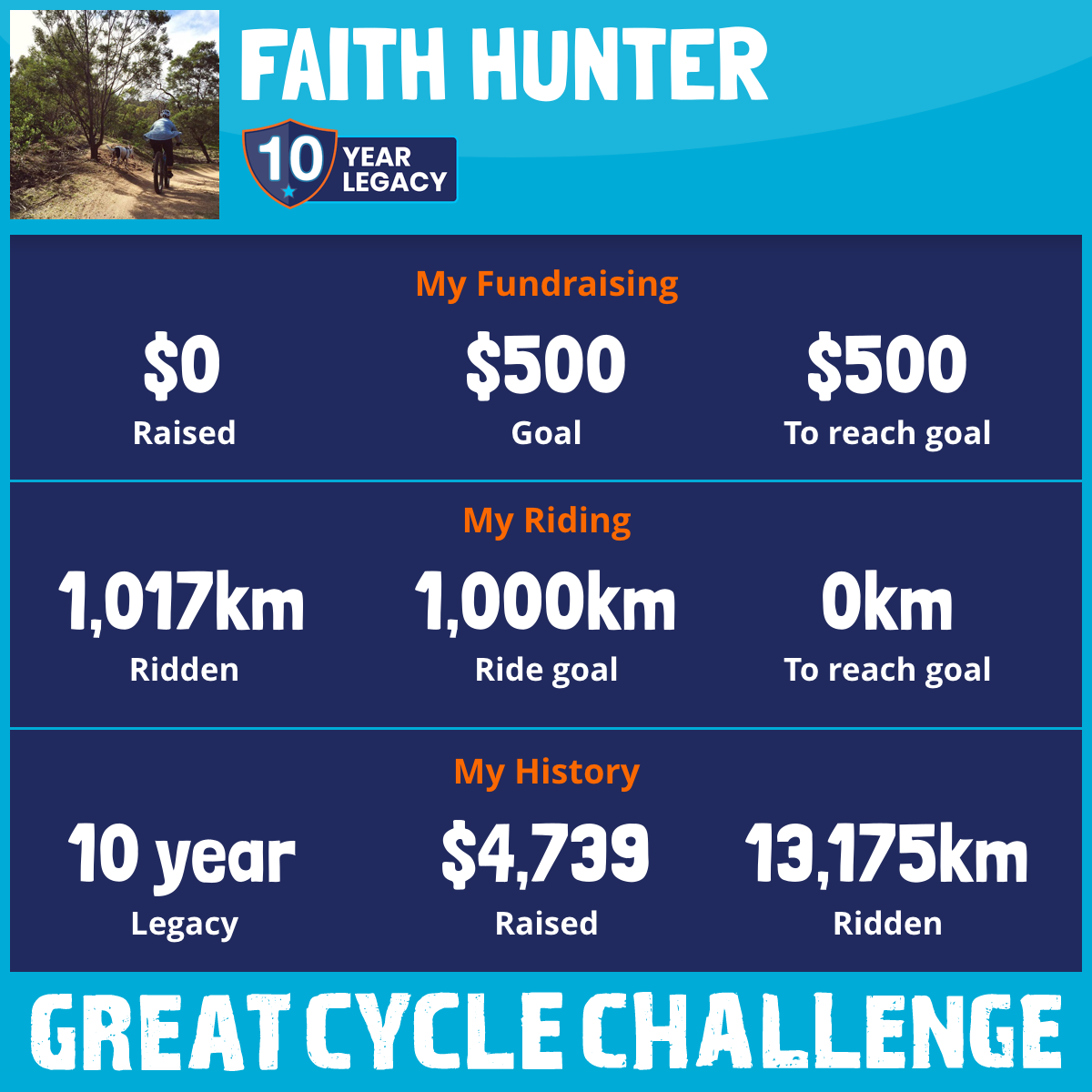 1,118 km Ridden$72 Raised2019
